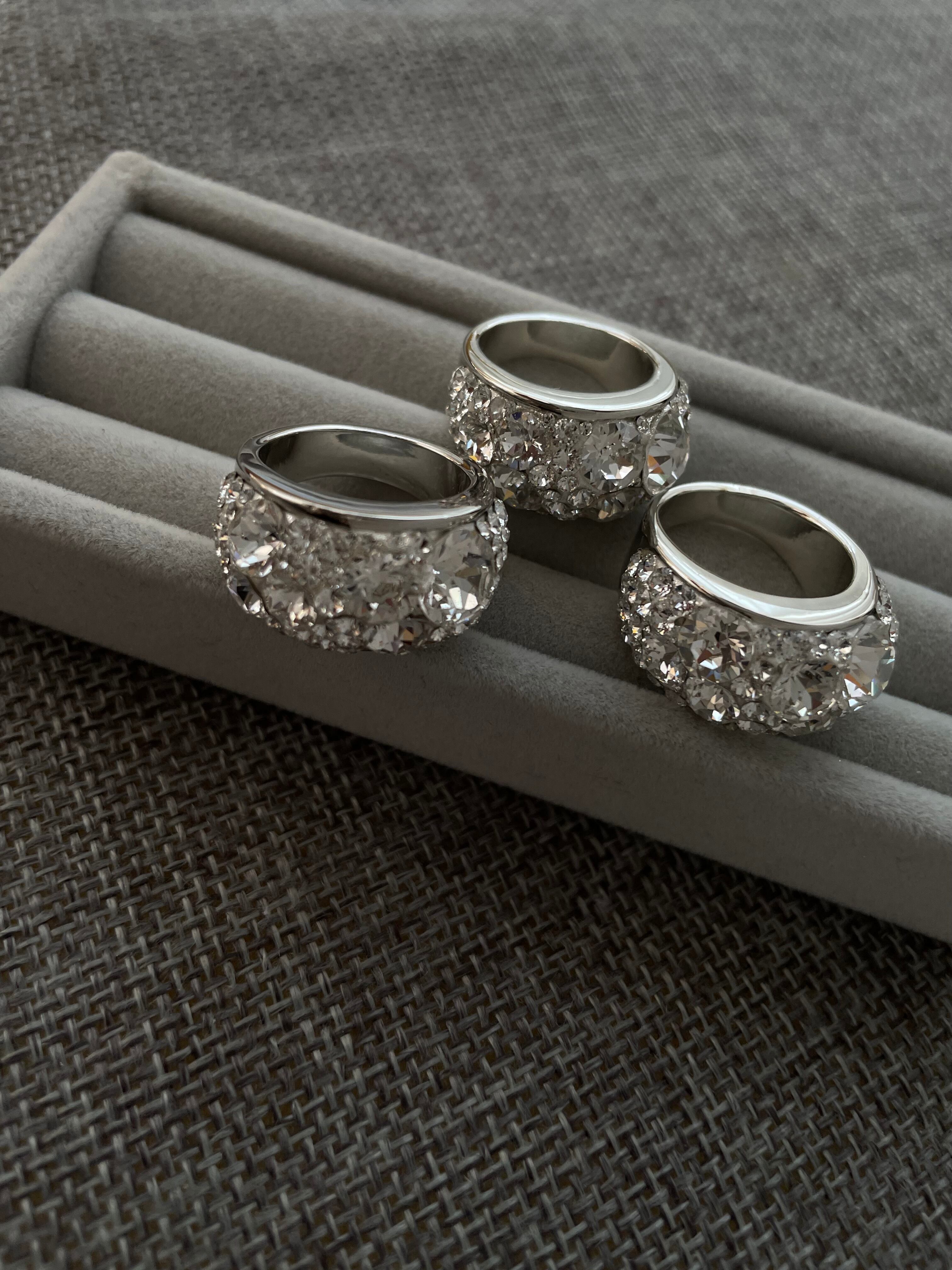 華やかさを演出するボリュームリング。存在感たっぷりのデザインで、おしゃれを楽しみたい方におすすめです。上品な輝きが手元を彩り、どんなコーディネートにもアクセントを与えてくれます。シンプルな服装にもぴったりマッチし、華やかなパーティーシーンにも活躍します。
